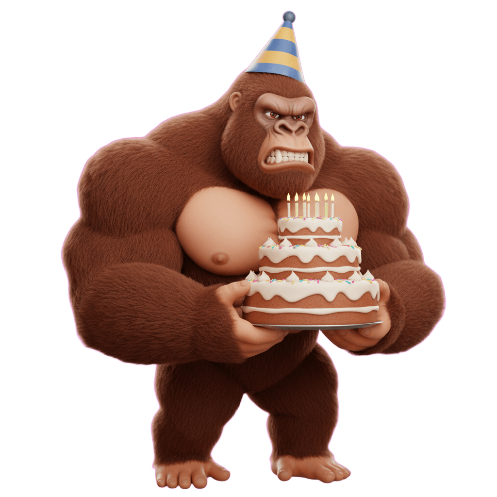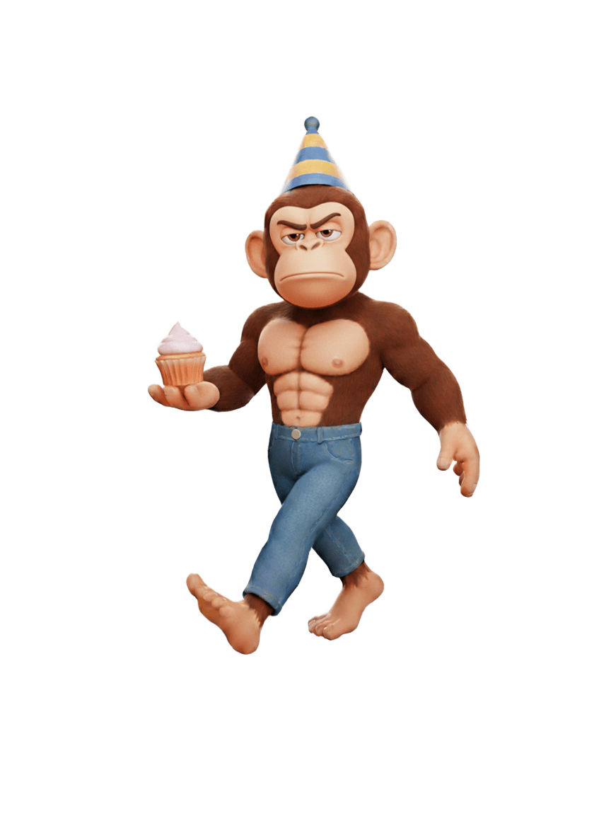 Get ready for the ultimate birthday adventure! Your special honoree is the star in this thrilling journey to the epic birthday bash you've planned. But beware—a mischievous gang of monkeys is out to spoil the surprise! Armed with cupcakes, the VIP must fend off these foes, facing tougher challenges from chimpanzees, acrobat monkeys, and a formidable gorilla.